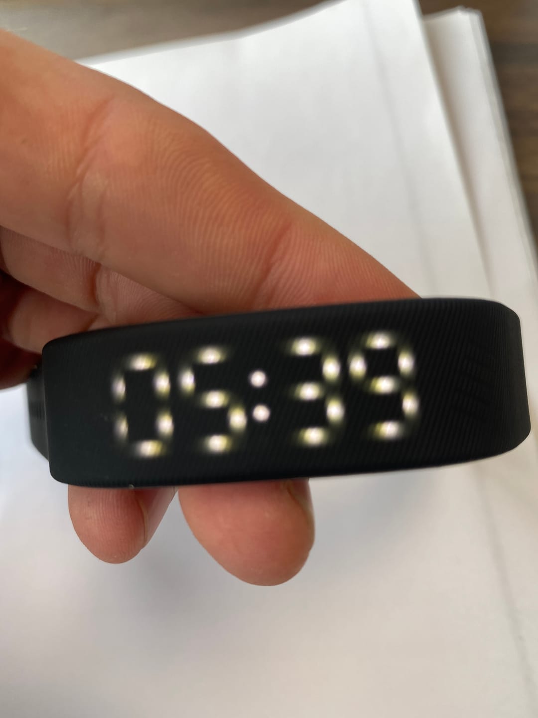 The alarm clock bracelet charges directly by plugging it into a USB port. No cables needed. Simply connect it to an adapter, laptop, or power bank, and it'll be fully charged in no time.